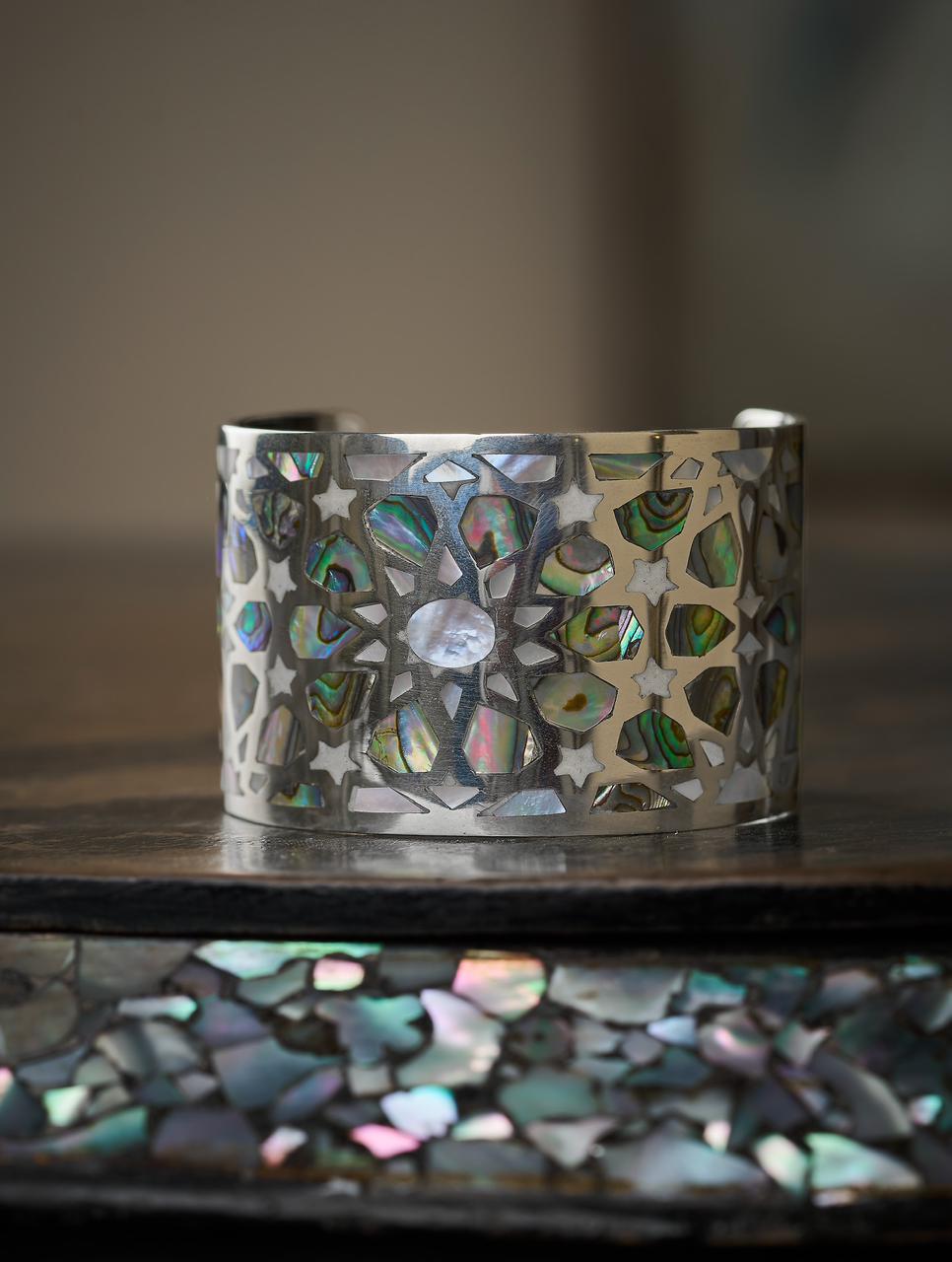 It is handcrafted from 925 sterling silver and hand-inlaid with natural mother of pearl, with every detail carefully set by hand.